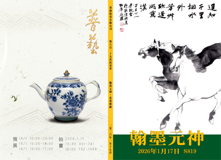 預展日期 2026 年 1 月 14 日 上午 10 時至下午 8 時 2026 年 1 月 15 日 上午 10 時至下午 6 時 2026 年 1 月 16 日 上午 10 時至下午 5 時